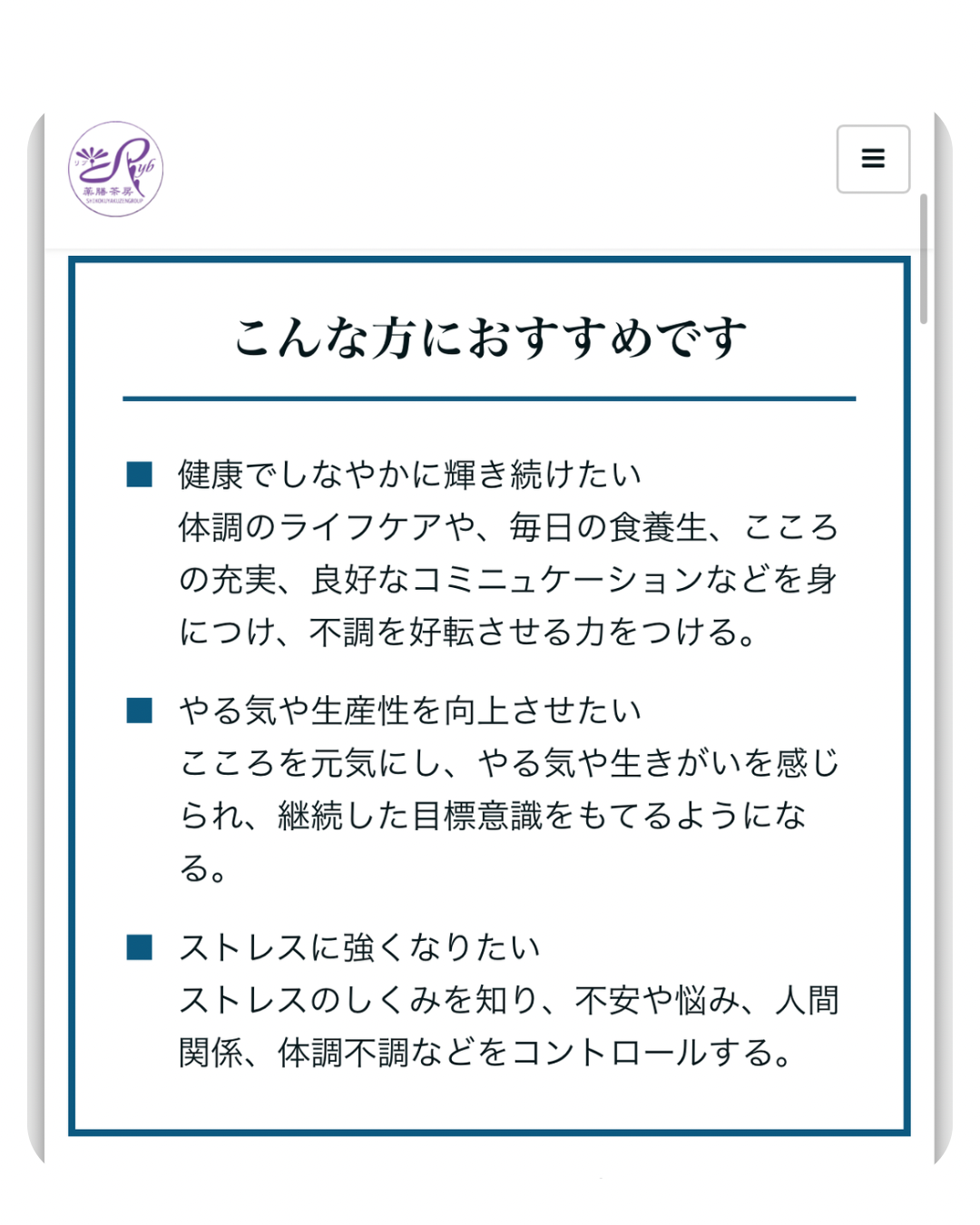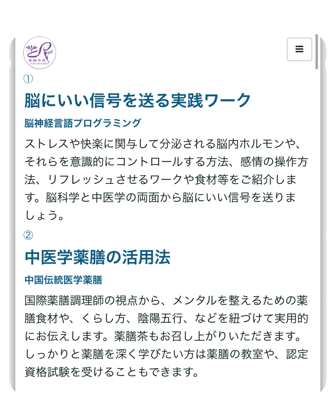 このセミナーでは、健康でしなやかに輝きつづける人生を送るために必要な二つのマネジメントをお伝えします。『①脳にいい信号を送る方法』と、『②中医学薬膳の活用方法』です。ストレスの推移を知り、メンタルを健やかに保つことを楽しく学んでいただけるよう実践ワークを交えています。