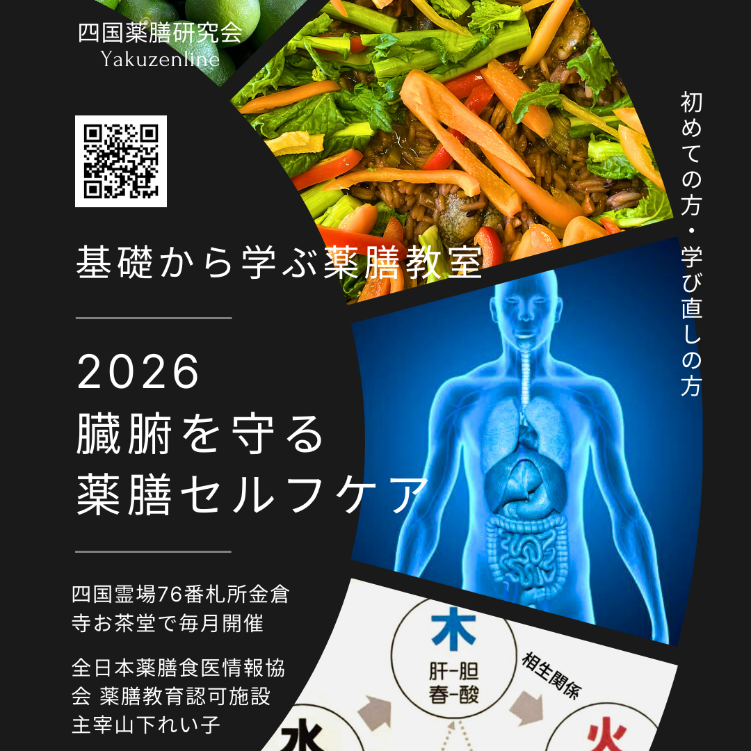 基礎から学ぶ薬膳 『臓腑を守る薬膳セルフケア2026』 金倉寺教室2026年1~6月基礎から学ぶ薬膳 『臓腑を守る薬膳セルフケア2026』 金倉寺教室1~6月