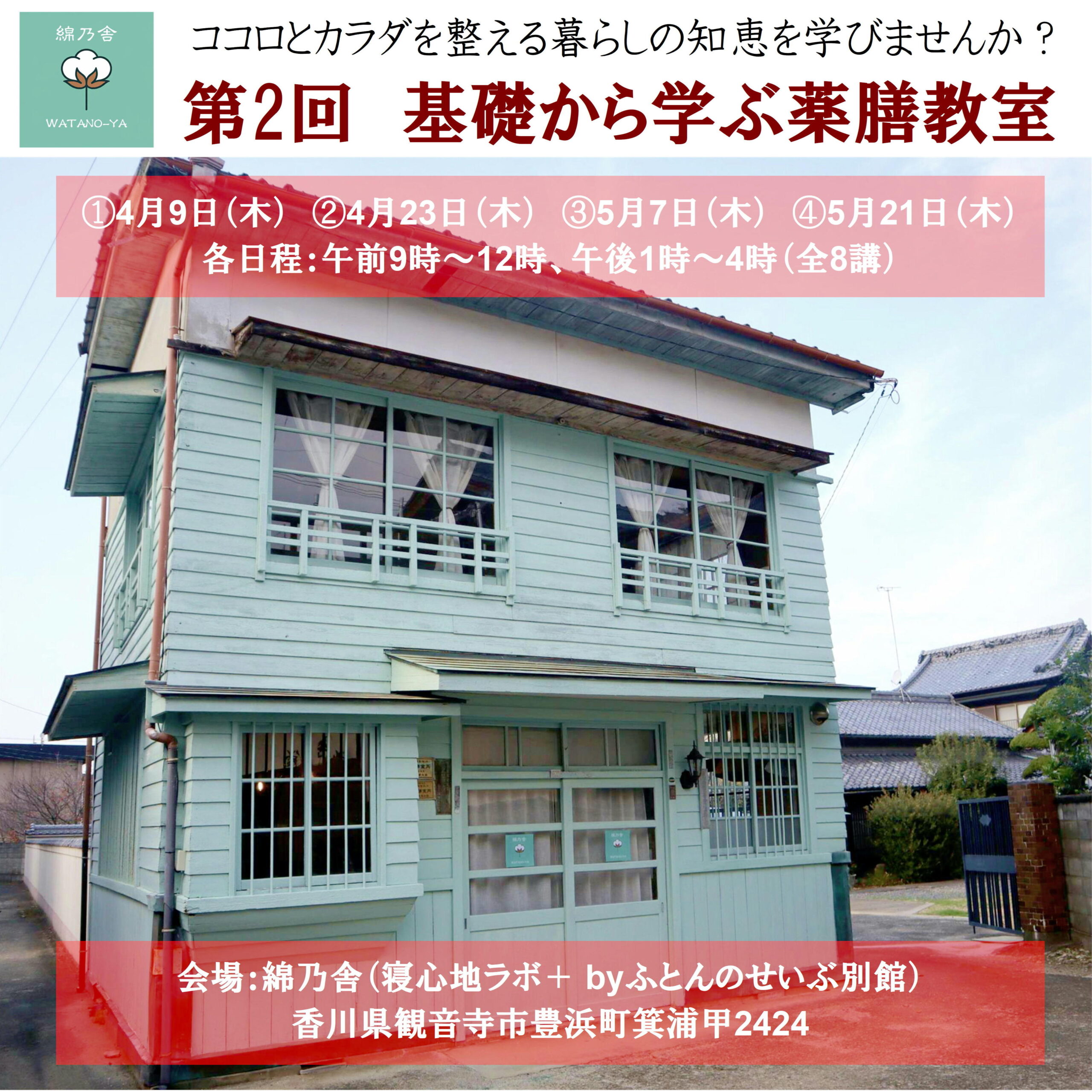 第2回 基礎から学ぶ薬膳教室 綿乃舎 4日間集中 (木曜 ) 4/9より (観音寺)【第2回 基礎から学ぶ薬膳教室 at 綿乃舎】