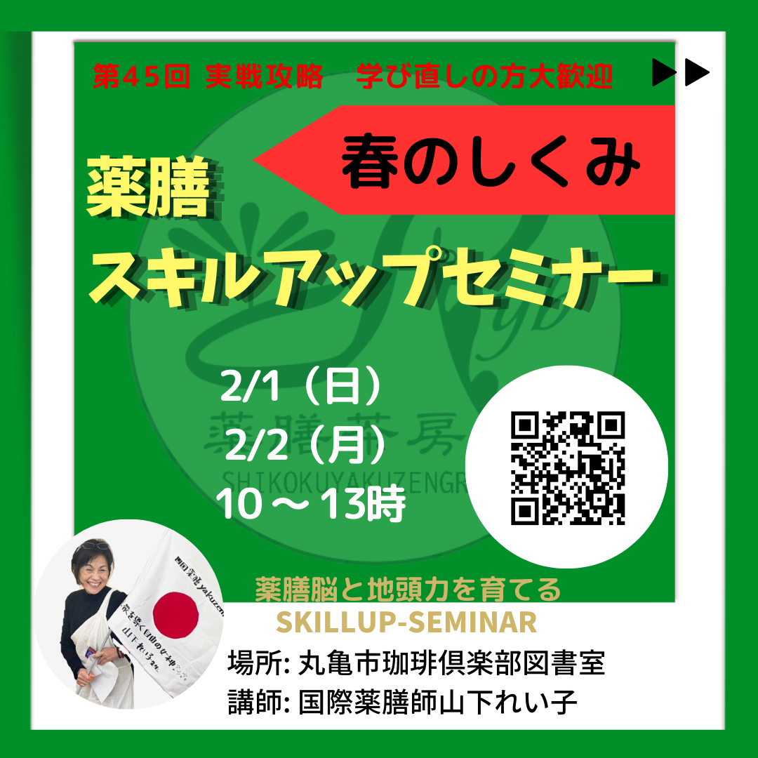 第45回薬膳スキルアップセミナー『春のしくみ』2/1(日)・2/2(月) ( 丸亀市)