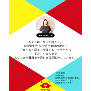 ◆講師 中須賀愛先生 (国際薬膳師・口腔周囲筋ケア認定歯科衛生士)