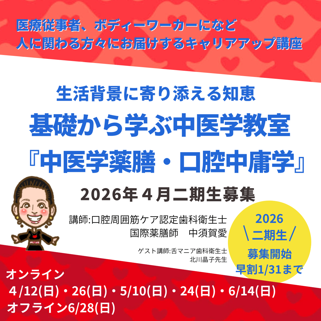 【基礎から学ぶ中医薬膳学教室】医療従事者、ボディーワーカーにお届けする中医薬膳学・口腔中庸学 キャリアアップ講座(香川県観音寺市)