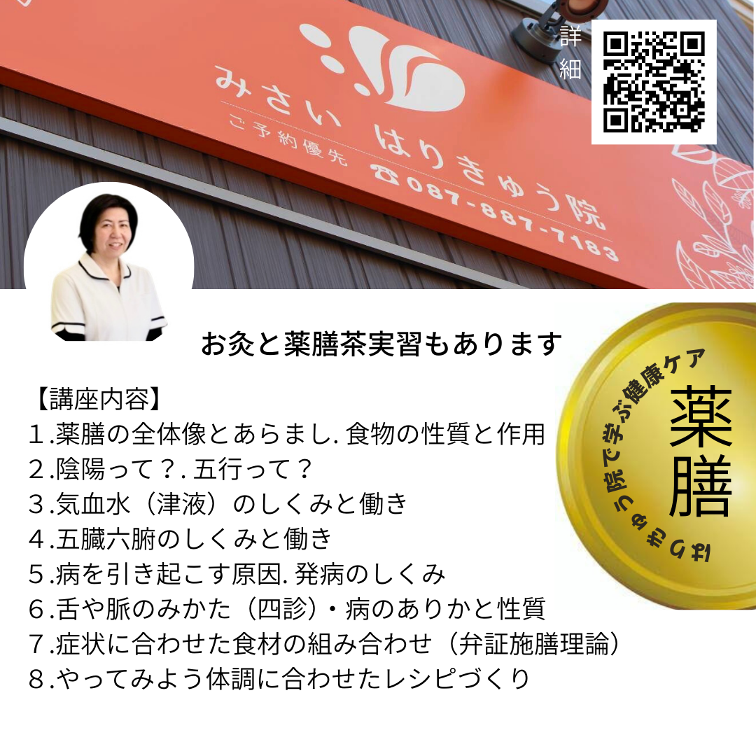 基礎から学ぶ薬膳教室 +お灸と鍼と薬膳茶 /3月より水曜&土曜クラス(高松市 みさいはりきゅう院)